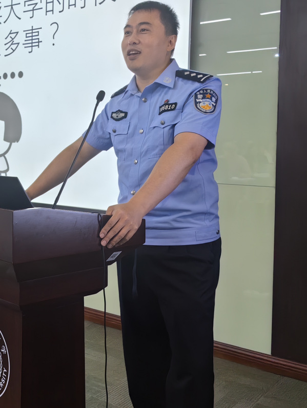 上海市公安局文保分局治安大隊(duì)黃同陽(yáng)警官結(jié)合高校常見(jiàn)學(xué)生突發(fā)安全事件案例,進(jìn)行剖析與處置流程講解,有效提升了參訓(xùn)人員的安全防范意識(shí)和應(yīng)急處置能力。