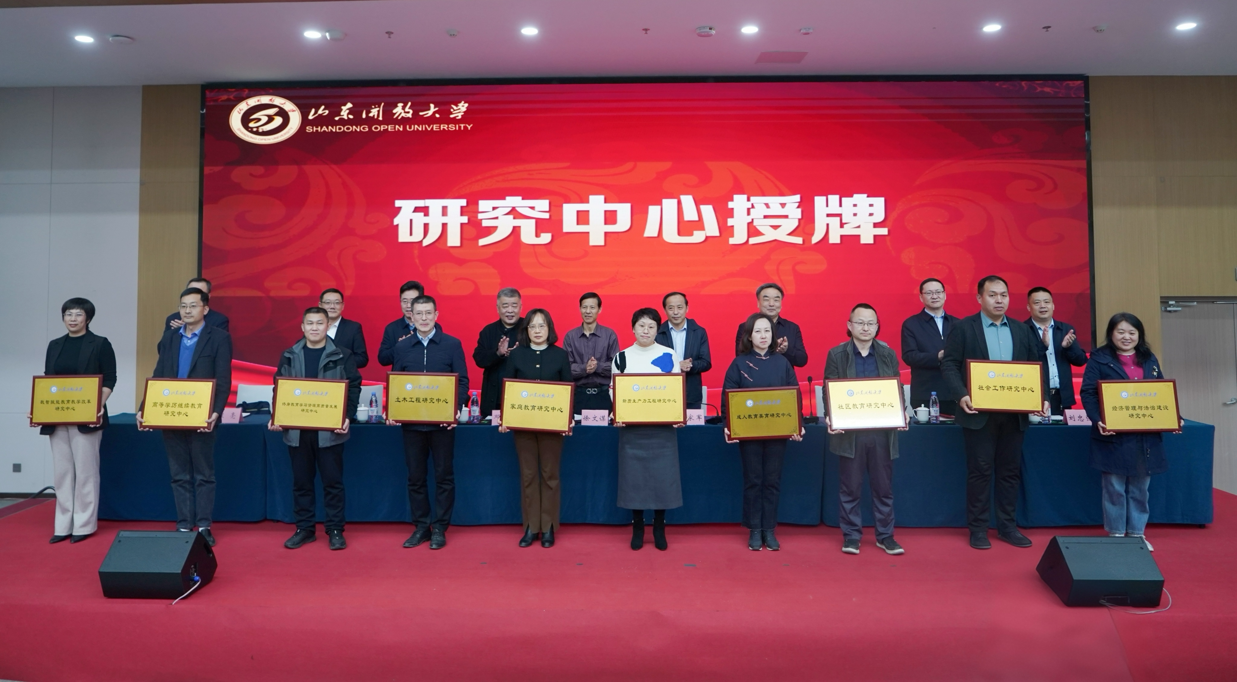 鄧俊慶、徐文謀,叢培軍、司家軍分別為山東開放大學終身教育研究院和數智教育研究院揭牌。司家軍為山東省教育廳原二級巡視員、山東省成人高等教育研究會常務副理事長張士瑞,山東聯通副總經理林軍,浪潮軟件股份有限公司黨委書記、董事長趙紹祥,新華三集團山東數智業務總經理夏軍鋒,賽爾網絡有限公司山東分公司總經理劉保太,曲阜師范大學基礎教育課程研究中心主任二級教授、博士生導師柳士彬六位特邀專家代表頒發了聘書。與會領導為數智賦能教育教學改革研究中心、高等學歷繼續教育研究中心、終身教育學習資源高質量發展研究中心、土木工程研究中心、家庭教育研究中心、新質生產力工程研究中心、成人教育美育研究中心、社區教育研究中心、社會工作研究中心、經濟管理與法治建設研究中心等十個研究中心授牌。