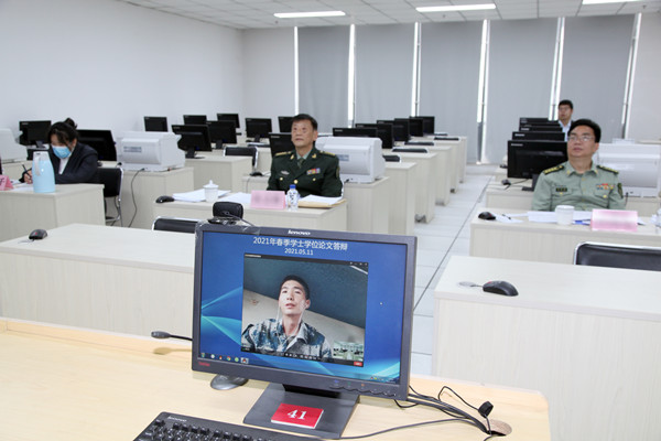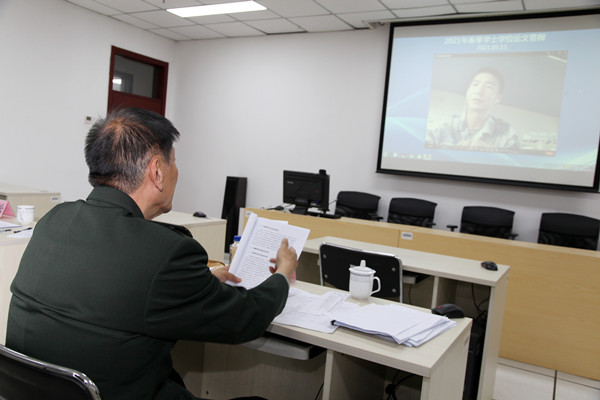 此次答辯委員會專家由軍事科學院、國防大學聯合勤務學院的教授組成。參加論文答辯的學生共有22名,他們不僅有身在軍列上的,還有身處軍艦上的;有在部隊營區的,也有正在艱苦野外駐訓場的;有來自陸軍、海軍、空軍、火箭軍等軍種部隊的,也有來自駐澳門部隊的士官學員。雖然學生所處天南海北,地域不同,但整個答辯過程組織嚴密,規范有序,答辯取得圓滿成功。