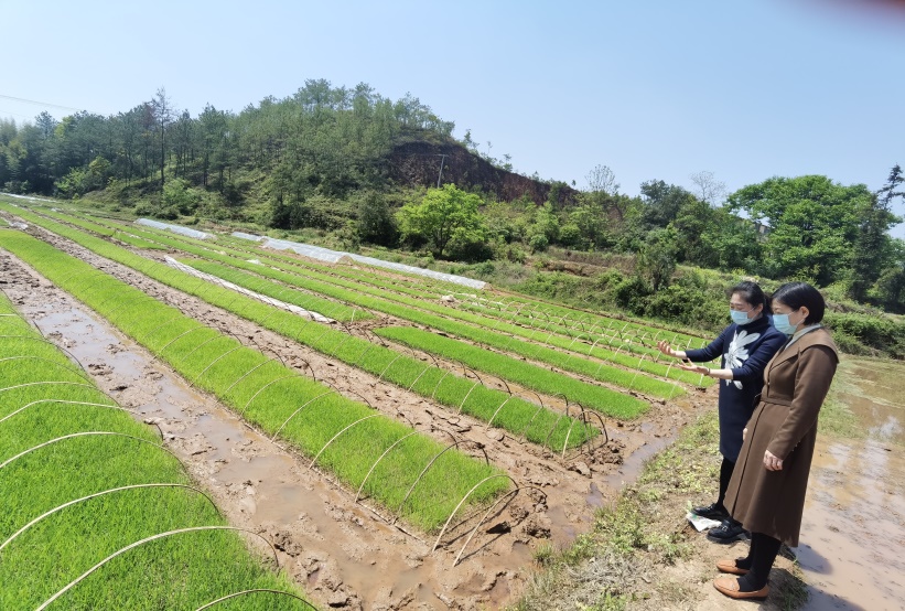校領(lǐng)導(dǎo)到田間地頭查看早稻秧苗生長(zhǎng)情況