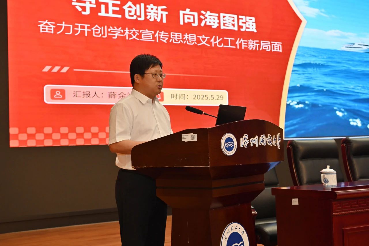 張建國指出,宣傳思想文化工作是黨的一項極端重要的工作,是我們事業(yè)發(fā)展的“根”與“魂”,是凝心鑄魂、培根固本的基礎工程。要提高政治站位,深刻認識做好新時代宣傳思想文化工作的極端重要性,深刻認識做好這項工作是事關全局、事關長遠的戰(zhàn)略任務,是推動學校事業(yè)高質(zhì)量發(fā)展的根本保障,也是全省開放大學服務國家和省域重大戰(zhàn)略的題中之義。要深刻領會習近平文化思想的核心要義與實踐要求,準確把握根本遵循;要胸懷“國之大者”和“省之要事”,深刻理解宣傳思想文化工作在服務大局中的戰(zhàn)略地位;要立足自身特色優(yōu)勢,深刻認識新時代賦予浙江開放大學的獨特使命與嶄新課題。