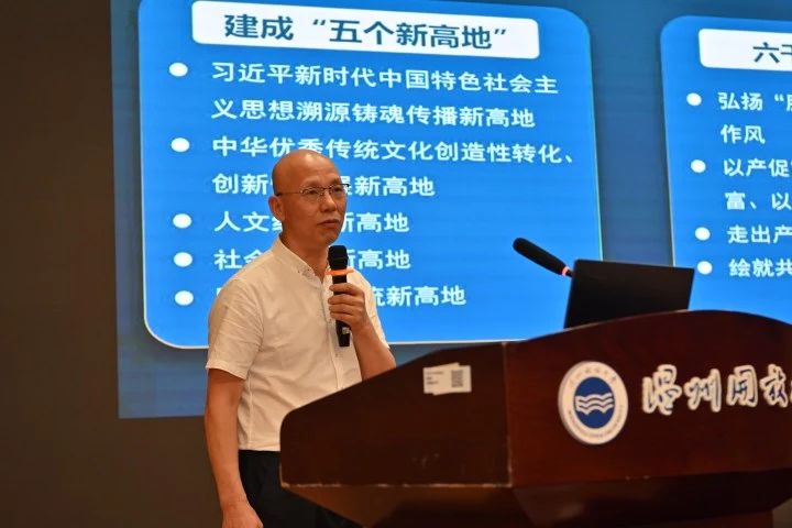 會上,黨委副書記盧文輝領學了習近平文化思想、習近平總書記關于意識形態(tài)工作的重要論述、習近平總書記對學校思政課建設和對精神文明建設工作作出的重要指示精神等內(nèi)容。省民宗委專家應邀作民族宗教工作政策法規(guī)專題講座。