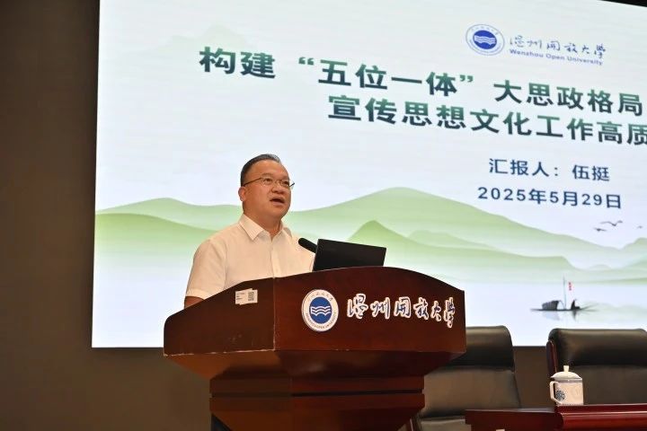 5月29日上午,2025年浙江省開大體系宣傳思想文化工作會議在溫州召開。會議深入學習貫徹習近平文化思想,認真貫徹落實全國全省宣傳思想文化工作會議精神,總結經(jīng)驗,分析形勢,部署工作,推動浙江省開大宣傳思想文化工作守正創(chuàng)新、再上新臺階,更好擔負起新時代的文化使命,以浙江特色全國示范的高水平開放大學建設的新成效,扎實助力高水平文化強省建設。