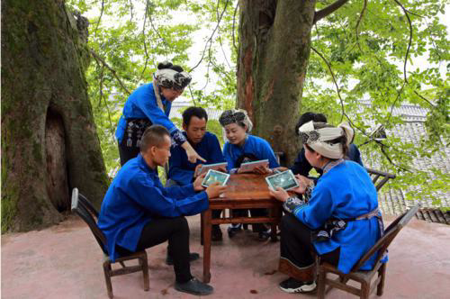 村民聚在一起學(xué)習(xí)網(wǎng)上課程。國(guó)家開(kāi)放大學(xué)供圖