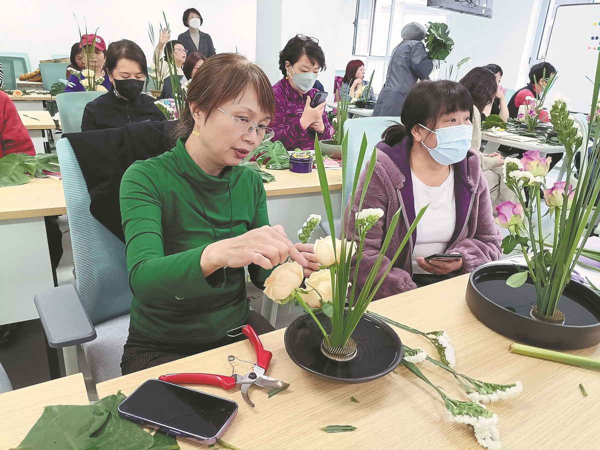 Students study flower arranging techniques during a class. [Photo/China Daily]