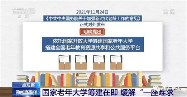 為積極應(yīng)對(duì)人口老齡化,2021年11月24日,《中共中央國(guó)務(wù)院關(guān)于加強(qiáng)新時(shí)代老齡工作的意見(jiàn)》正式對(duì)外發(fā)布,明確提出“依托國(guó)家開(kāi)放大學(xué)籌建國(guó)家老年大學(xué),搭建全國(guó)老年教育資源共享和公共服務(wù)平臺(tái)。”“將老年教育納入終身教育體系,鼓勵(lì)有條件的高校、職業(yè)院校開(kāi)設(shè)老年教育相關(guān)專業(yè)和課程。”“推動(dòng)部門(mén)、行業(yè)企業(yè)、高校舉辦的老年大學(xué)面向社會(huì)開(kāi)放辦學(xué)。”