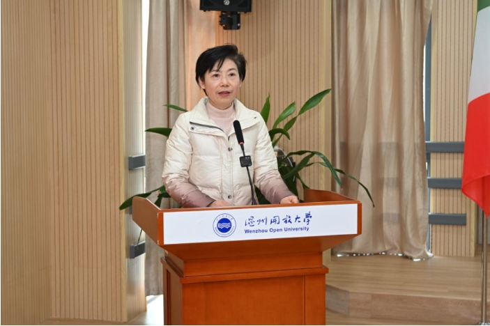 浙江開放大學黨委委員、副校長顧蓓熙希望溫州開放大學意大利華僑學院積極發揮“凝僑心”“匯僑智”和“聚僑力”作用。積極落實國家、浙江省對開放大學“走出去”的有關部署,開展務實有效的跨學科、跨地區、跨年齡的學歷和非學歷教育培訓,讓在意華僑特別是我省華僑,身在海外、胸懷祖國、心系浙江。開展項目化、專題化的線上線下活動,實現海外學習全軌跡、教學支持全程化、教學類型全覆蓋、教育服務全方位,面向有學歷提升、文化學習、技能培訓需求的華人華僑定向開展個性化、高品質服務。加強與省內華僑、歸僑人數較多的縣市區開大的互動,拓展辦學功能和業務范圍,加快形成常態化、機制化、成果化的海外辦學模式,把華僑學院打造成為開放大學“走出去”的靚麗名片。