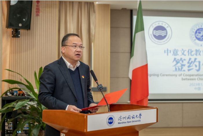 12月29日,溫州開放大學舉行和意大利意中文化教育交流研究中心、意大利佛羅倫薩中文學校合作交流協議簽約儀式,現場簽約建立溫州開放大學意大利華僑學院。