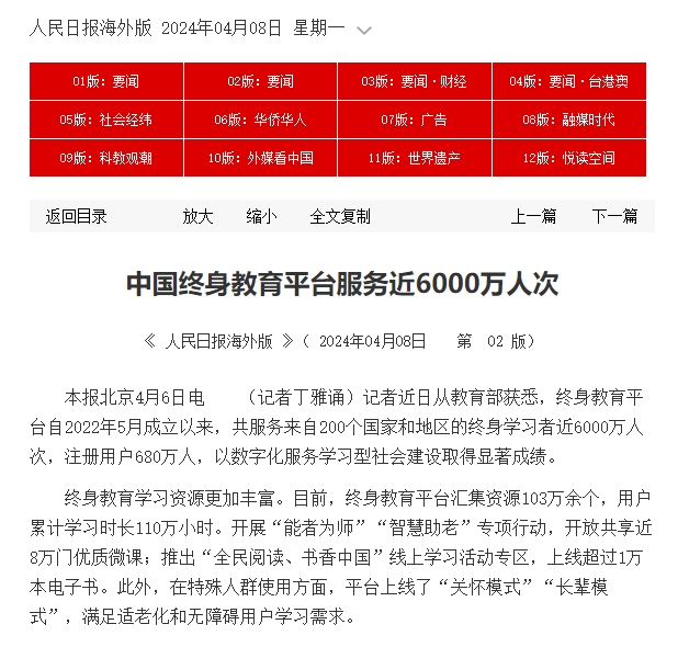 【人民日報】中國終身教育平臺服務(wù)近6000萬人次