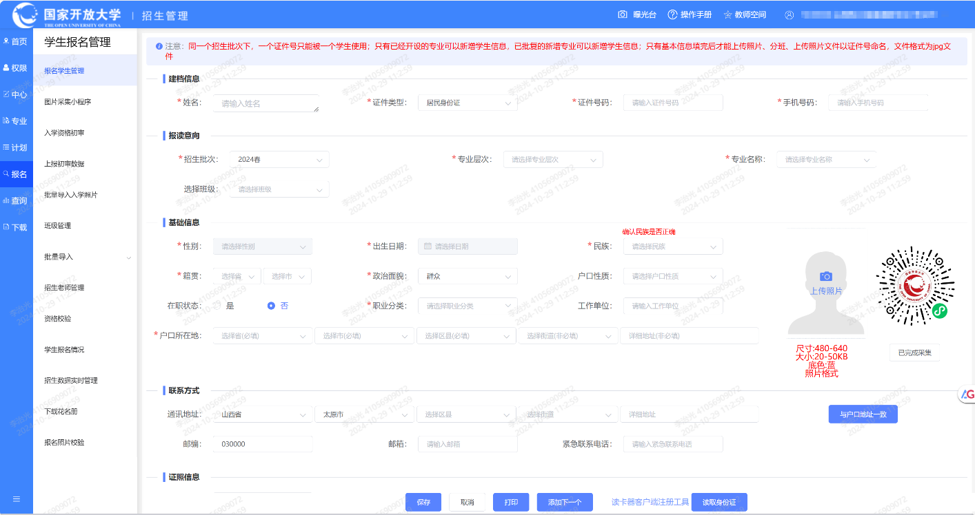 招生系統(tǒng)報(bào)名錄入頁(yè)面