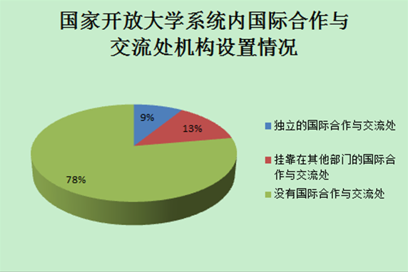 也就是說,在我國的開放大學體系內(nèi),高達78%的單位沒有國際合作與交流部門設(shè)置或者業(yè)務(wù)安排。這一方面說明了我國開放大學體系內(nèi)整體的國際合作與交流能力比較弱,而另一方面在國內(nèi)外環(huán)境利好的情況下,要提升或改善當前的局面,必須由總部進行引領(lǐng),才能使我國的開放大學在整體上提升國際合作與交流的業(yè)務(wù)素質(zhì)和能力。