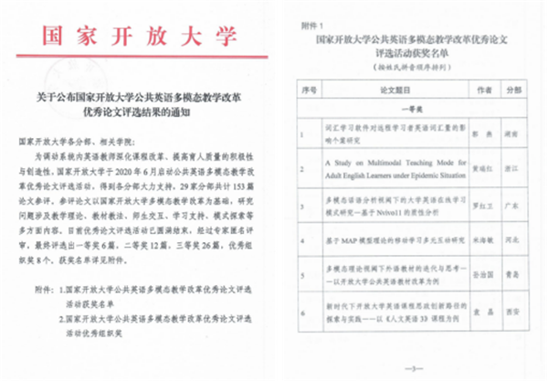 圖6 公共英語多模態教學改革優秀論文評選結果通知