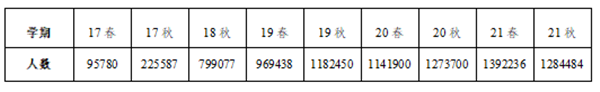 表1 2017-2021國開學習網大學英語課程學習人數統計