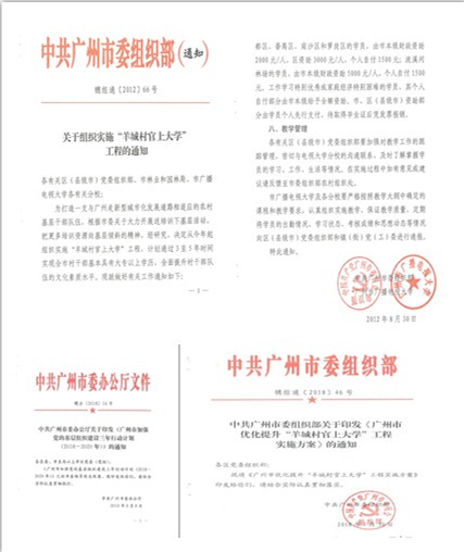 2012年以來,廣州市委組織部認真貫徹落實習近平總書記系列重要講話精神和關于加強基層黨組織建設精神,針對廣州市村(社區)“兩委”換屆后,基層干部普遍存在學歷層次低、綜合素質不高、履職能力不強、與廣州推進國家中心城市建設的要求不相匹配、與廣州農村改革發展和形勢任務變化極不適應等突出問題,立足廣州實際,組織實施“羊城村官上大學”工程,委托廣州分部具體承辦。7年來,廣州市委組織部始終堅持把“羊城村官上大學”工程作為基層黨建工作的重中之重,從鞏固黨的執政地位的大局出發,著眼于提升基層黨組織組織力、突出政治功能、夯實黨在社會基層的執政基礎,把推進“兩委”干部在職學歷教育作為加強基層黨組織書記建設的一項基礎性、戰略性舉措,持之以恒實施“羊城村官上大學”工程,成效顯著,不僅有效提升了基層干部的學歷水平和整體素質,開辟了基層干部學習培訓的有效途徑,為破解基層干部知識獲取途徑不暢難題、打造高素質基層黨組織帶頭人隊伍提供了有益啟示。