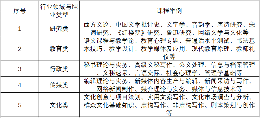 在“專業標準”中,漢語言文學專業基于面向職業分析,調整人才培養目標與規格,構建“專業拓展課”課程體系(見表1):