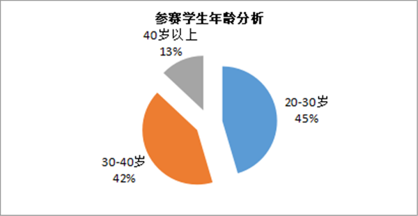同時,定期舉辦線下學生教學技能比賽,通過線上聯(lián)系、線下展示的方式,以賽促學,促進學生綜合素質(zhì)的提高。2019年,學前教育專業(yè)舉辦了首屆學前教育專業(yè)學生幼兒集體活動優(yōu)秀案例評選。此次活動獲得了分部、學院的極大關(guān)注與支持。經(jīng)過分部大力宣傳、廣泛動員、積極組織,共有來自29個分部推選的77個幼兒集體活動優(yōu)秀案例作品參加總部評選。參賽學生以90后、85后為主,45%的學生年齡在30歲以下,年齡組成如下: