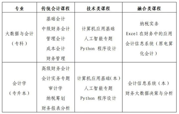 按照專本碩一體化縱向貫通思路,完成了會計學等專業的專業標準研制與審定工作。完成了會計學專業(專升本)人才培養方案的修訂工作。完成了會計(專科)更名為大數據與會計(專科)的工作,并完成了的人才培養方案制定和審定工作。完成了與北京工商大學聯合培養會計專碩MPACC項目前期研討及師資培養協議起草。學歷教育和證書教育橫向融通,在培養方案中設計了證書學分替代,專科主要培養出納、會計核算人員,因此對應會計初級證書;專升本對應培養管理型會計人才,因此對應會計中級證書。