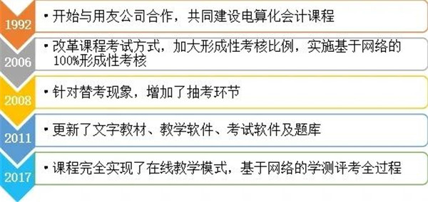 會計學專業歷來重視專業和課程的實踐教學,我們針對專業特點設計了不同形式的實踐教學形式。尤其是開放教育總結性評估以后,基本形成了線上與線下相結合,手工與軟件相結合,校內與實踐基地相結合的“三結合”實踐模式。同時,為了提高實踐教學的質量,會計學專業積極與先進的教育公司合作,共同設計和開發適應開放教育學生特點的實踐內容。例如,自1992年開始與用友公司合作開發電算化會計課程(現更名為會計信息系統)的課程教材、考試平臺、測評標準,該課程一直受到系統內老師們和學生們的好評,均表示該課程實用性較強,通過該課程的學習對財會實踐工作有很大幫助。前期探索的課程合作模式可以運用到整個專業改造中。