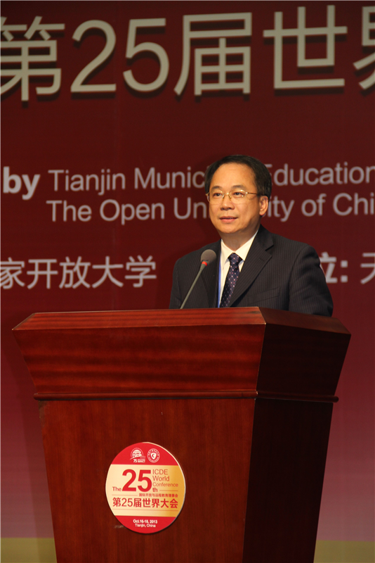 2013年10月16日,第25屆ICDE世界大會(huì)在津開幕。ICDE執(zhí)委、國(guó)家開放大學(xué)校長(zhǎng)楊志堅(jiān)出席會(huì)議。