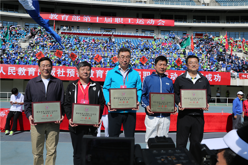 ../images/2021-11/d68727b79c744919826b6ea97d2539b8.jpg教育部黨組書記、部長陳寶生,副部長李曉紅帶領參加運動會的機關司局長和各隊領隊進行健步走,拉開此次運動會的序幕。“用運動加油,用運動助力,健康工作六十年,快樂學習一輩子。”