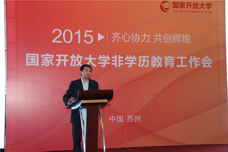 ../images/2021-11/9c678182f818444389555e2665245429.jpg2015年10月29日—30日,國家開放大學非學歷教育工作會在蘇州舉行。來自國家開放大學各分部、地方學院、行業學院相關領導及部門負責人約300人齊聚一堂,共同探討非學歷教育工作的發展之策。