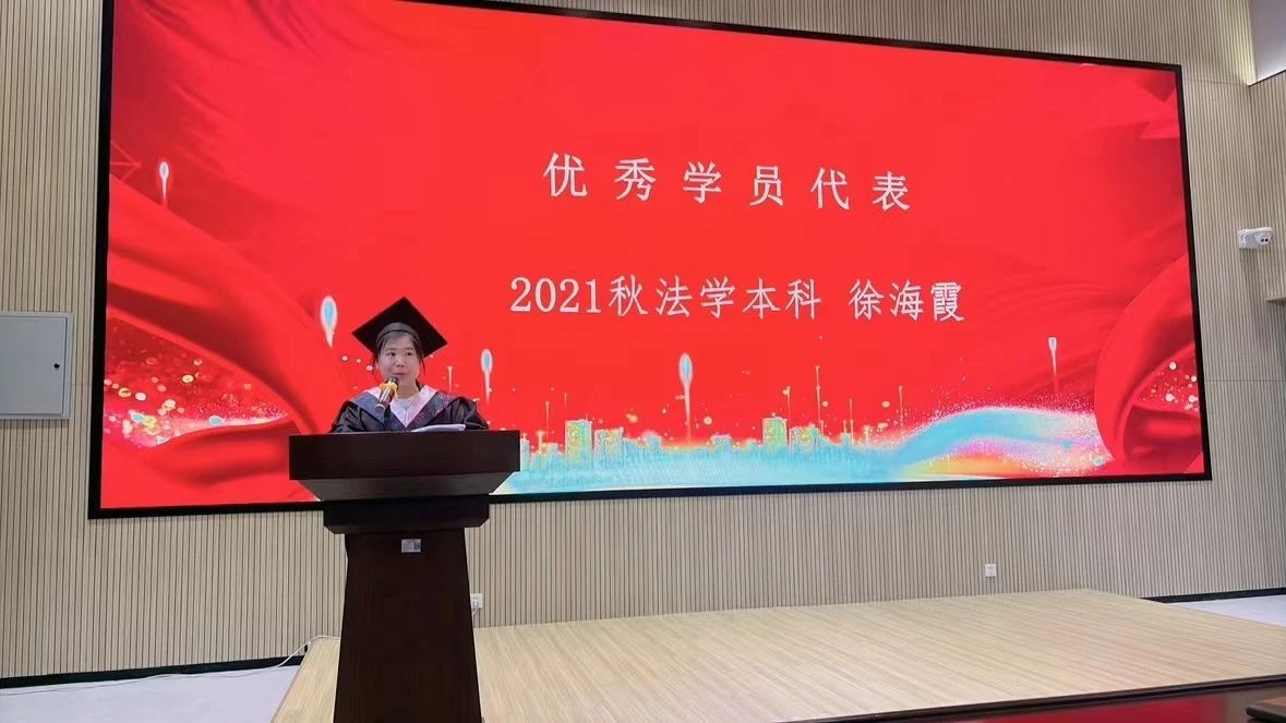 4月13日,在寧波開放大學鄞州學院2024年春季開學典禮上,21秋法學本科專業的徐海霞代表優秀學員上臺發言,她的求學經歷引起了在座所有師生的強烈反響。