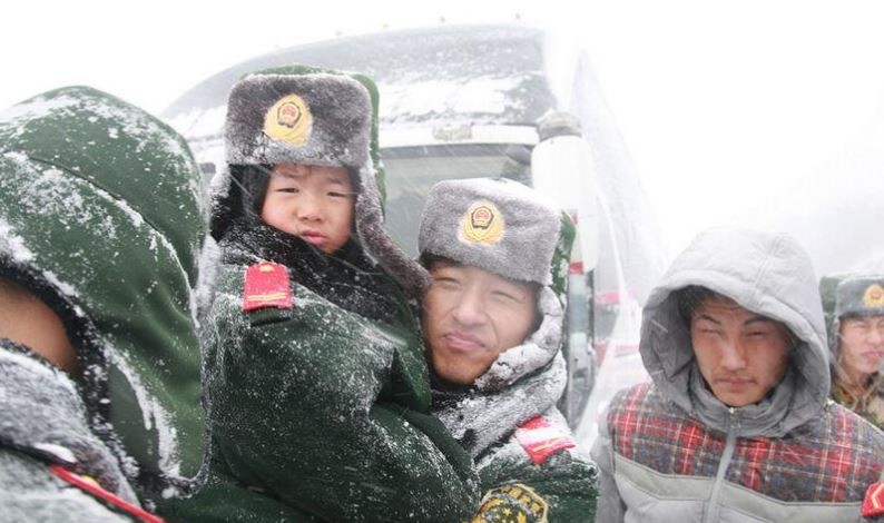2015年11月3日晚,暴雪突降延慶,千余車輛、2000多名群眾被困京藏高速八達嶺段。武警北京總隊300余名官兵前往救援,冒雪徒步20公里集結(jié)到八達嶺高速隧道內(nèi),給被困群眾送來食品、藥品并疏通車輛,經(jīng)過近3小時奮戰(zhàn),冰雪清除。一方有難八方支援,武警官兵在大雪中奮斗的身影讓我久久不能忘懷。