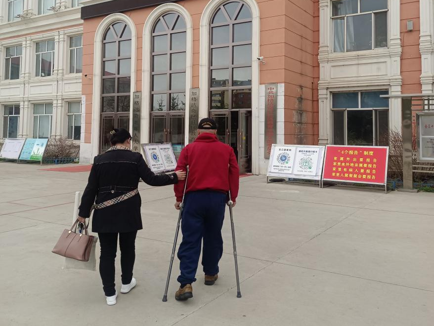 周巖老師深知這次受傷會直接影響本學(xué)期教學(xué)進度,所以,他經(jīng)過短暫幾周休養(yǎng),于2022年4月7日在愛人的陪同和攙扶下,周巖老師拄著雙拐又回到了老年人大學(xué)的講臺上。