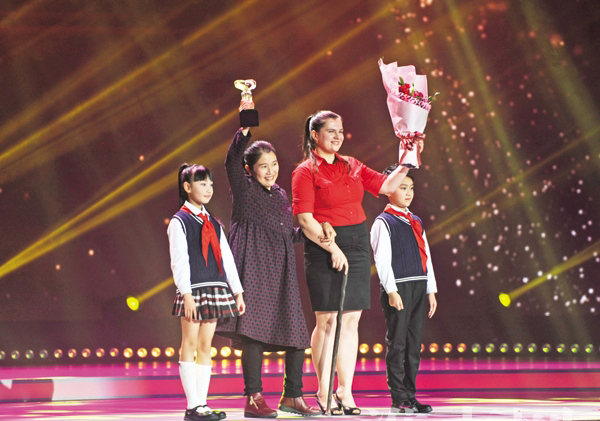 “心動安徽·最美人物”頒獎詞這樣描述她:一根拐杖,撐起倔強(qiáng)的軀體;一條板凳,跪?qū)γ利惾松?/span>18年屹立講臺,一筆一劃刻寫師道尊嚴(yán);桃李不言,下自成蹊,她用微笑告訴我們:汗水的收獲更加甜美,低跪的姿態(tài)讓夢想飛得更高!