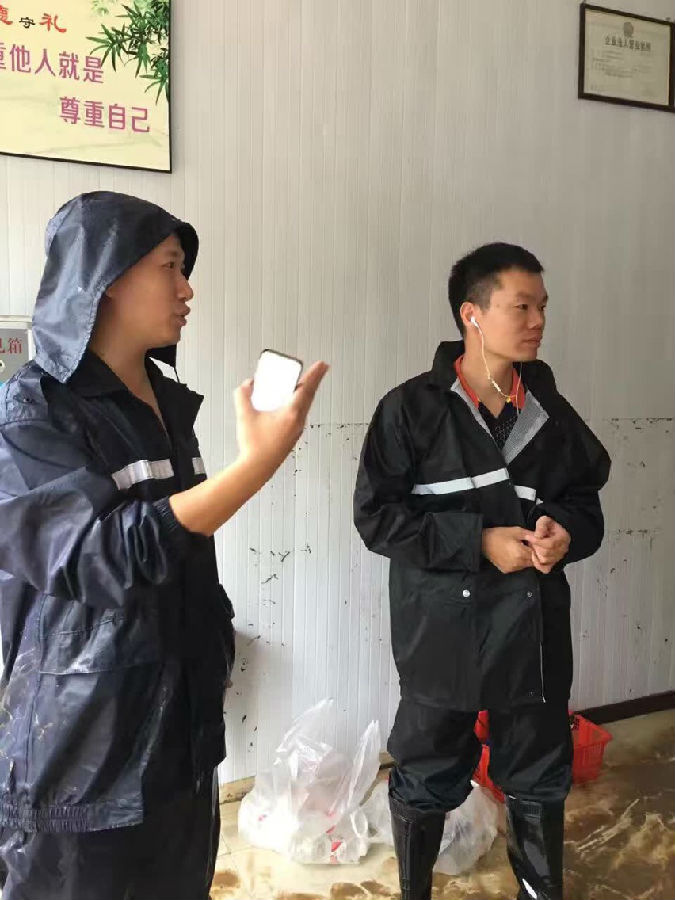 陳茂豐(右)2016年鯰魚臺風過后到村民家里查看災情