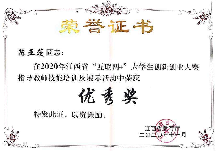 陳亞薇始終堅定教師是立校、強校之本,師德是教育之魂。從踏入江西開放大學的那一刻起,她便忠誠于黨的教育事業,認真執行黨的教育路線、方針,嚴格按照黨的教育政策、根據教學大綱認真教學,為人師表,全心全意做好教書育人工作,以高度的責任感和事業心投入到教育工作中去。