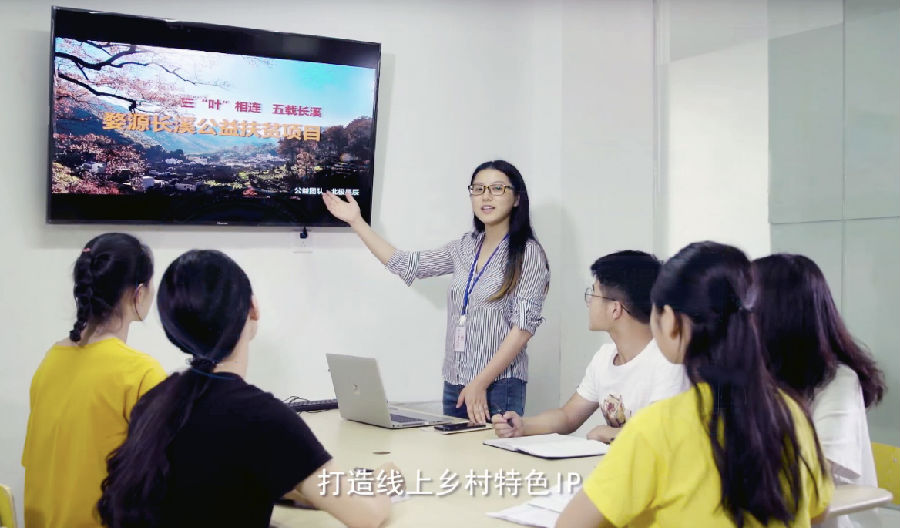 陳亞薇帶領團隊在幫扶長溪村實現電商旅游致富的同時,顯著的經濟效益也在吸引眾多在外務工者返鄉創業。她們的團隊也不忘“授人予魚,不如授人予漁”。要想讓長溪村踏上長久的、持續的致富之路,光靠團隊的幾個人扶持是遠遠不夠的。“扶貧先需扶智”,在幫扶過程中,不定期舉辦電商技能培訓和創業培訓,由她帶領的團隊提供技術培訓,同時聯合校企合作中優秀的創業導師,針對村中的返鄉創業者和村中有志青年進行電商專項技能培訓和創業培訓,使其掌握電商政策、網店視覺設計、網店客服、網店運營推廣、公眾號運營、短視頻推廣、直播推廣、電商文案策劃、內容營銷等多項技能以及電商創業前的理論輔導。她們正是利用自身專業優勢,積極幫助鄉村創業者們,解決他們在創業路上遇到的技術難題,提升返鄉創業者們的創業信心和成功率。