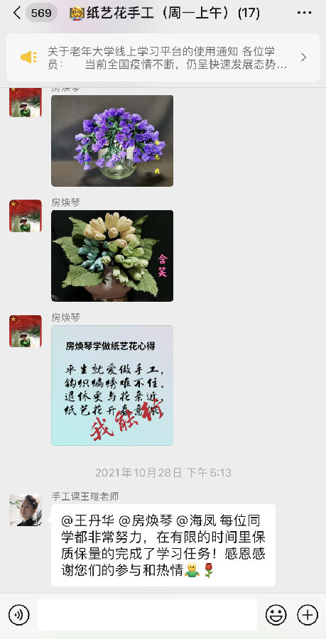 深秋的國開老年大學的紙藝花課堂上,在王老師的帶領下,師生妙手生花,這里成了洋溢著花朵與笑聲的海洋。