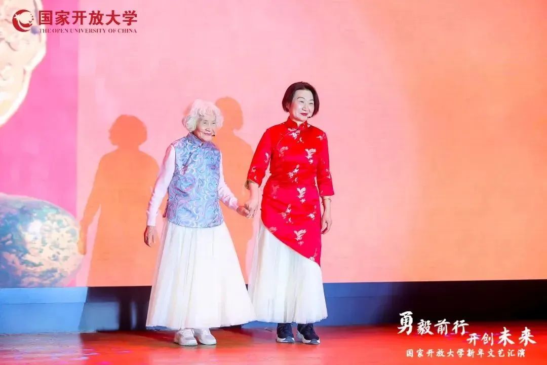 課堂時光總是快樂且短暫,每節(jié)課后,連素華都會和女兒一起在家門口的公園,放著音樂練習走步,她們認真的態(tài)度和對學習的熱愛也深深打動了老師們,并受邀在國家開放大學舉辦“勇毅前行 開創(chuàng)未來”2022年新年文藝匯演中演出,節(jié)目獲得了意想不到的成功。