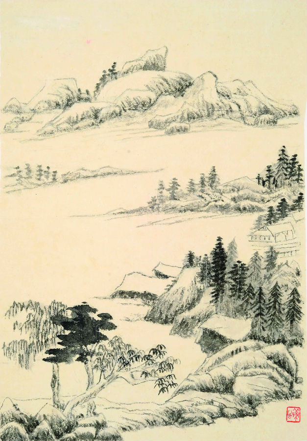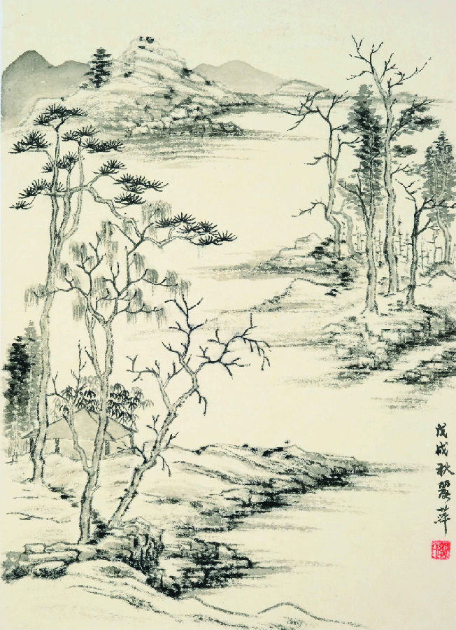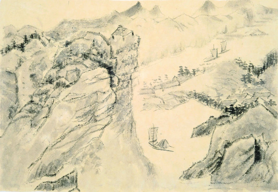 哈薩 溪山風雨圖冊之一 紙本水墨