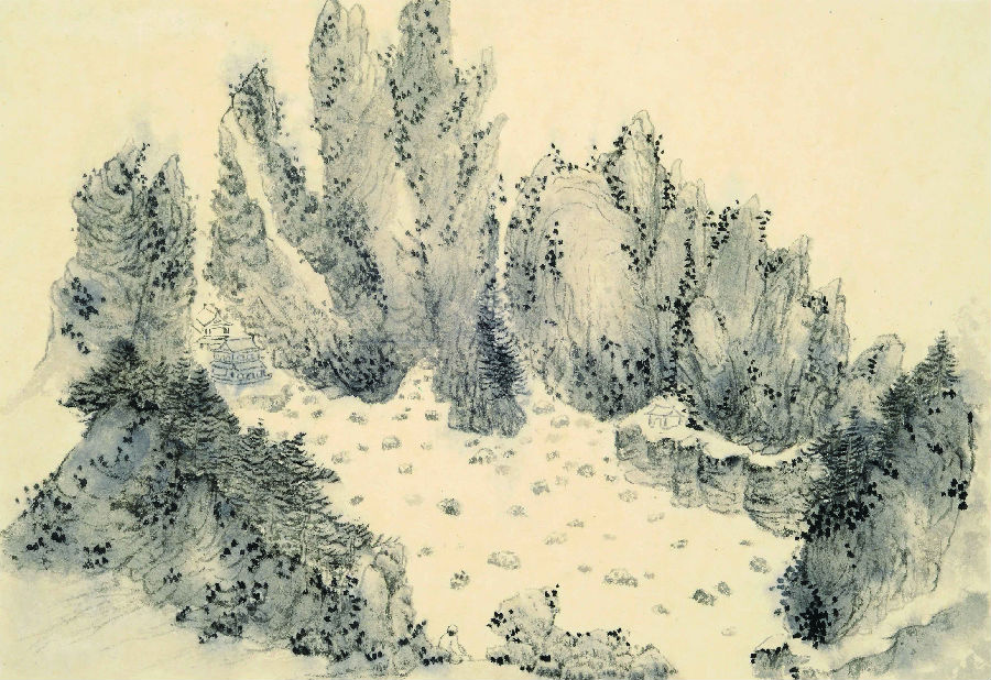 薛梅 溪山風(fēng)雨圖冊(cè)之一 紙本水墨 2018
