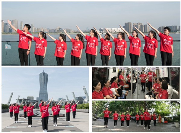 “靈活的手指萬里挑一,點贊的青春綻放芳華。”此次“快閃”活動的成員來自浙江電大,從萌生想法到活動成型共花了一個多月時間,排練數十場。他們通過改編手語,參考學習抖音等APP上傳的手指舞視頻,再融合自身創意,根據《光榮啊,中國共青團》歌詞及風格設計手指舞動作,采用與“快閃”行為藝術相結合的表現形式,歡度了一個充滿青春元素、活力滿滿的五四節。