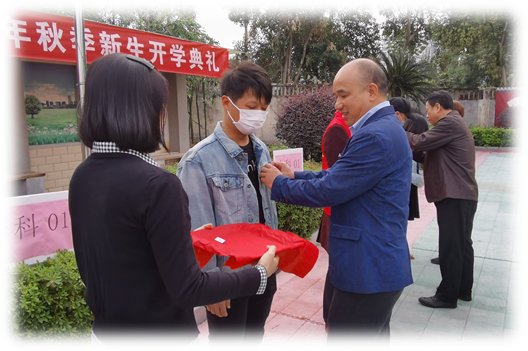 每年春秋兩季,開展新生入學儀式,觀看“開學第一課”。將愛國元素融入開學典禮,新生“和國旗同框”,師生合唱《歌唱祖國》。通過給新生佩戴校徽,傳遞學生證,開展老生帶新生活動,還有新生宣誓、優秀學生表彰、優秀校友事跡介紹等環節,幫助同學們凝聚集體意識。在儀式上,為幫助困難家庭學生順利入學,解決生活問題,學校予以減免了部分學費,讓新同學無后顧之憂,安心學習。此外,為鼓勵師生積極踐行綠色生活方式,大力弘揚艱苦奮斗精神,幫助同學們樹立起“節約糧食,拒絕浪費”的正確觀念,深入推進制止餐飲浪費教育。2020年秋季的新生開學典禮上,由優秀校友鄧歆做了主題發言,在迎新現場還擺放了“拒絕舌尖上的浪費光盤行動你我同行”條幅,同學們紛紛積極參與,主動簽名。
