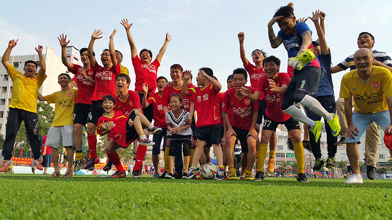 綠坪之上,黃得耀眼、紅得喜慶、藍(lán)得奔騰,吶喊、跳躍、搖擺,人形的交錯(cuò)、面龐的重疊、呼喊的沖撞……不知其中緣由,也不知人物所言所語(yǔ),唯一知道的是,一切的匯聚,或許只為這片刻的歡騰。