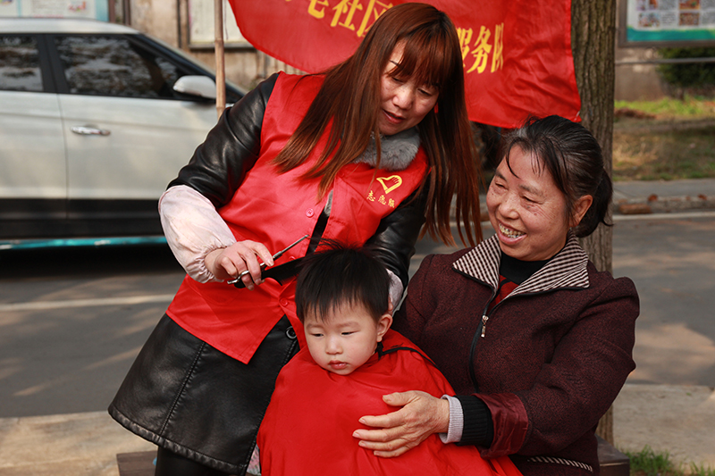 創(chuàng)最美文明城市,做最美“衡陽(yáng)群眾”,大力弘揚(yáng)“奉獻(xiàn)、友愛(ài)、互助、進(jìn)步”的志愿服務(wù)精神,傳遞溫暖和關(guān)愛(ài),讓居民們享受到不花錢就可以免費(fèi)理發(fā)的服務(wù)。圖為“衡陽(yáng)群眾”志愿者在社區(qū)開(kāi)展愛(ài)心義剪志愿服務(wù)活動(dòng)???,奶奶笑得多開(kāi)心呀。