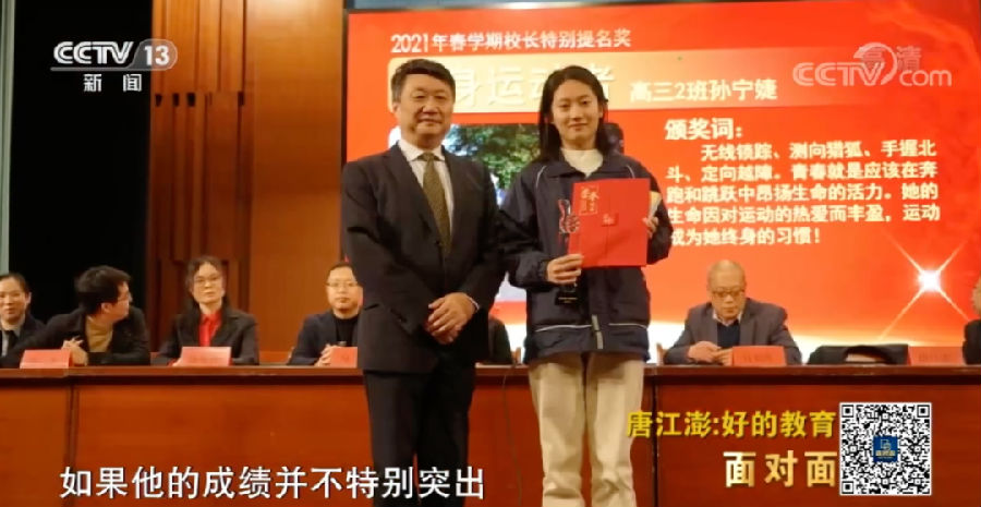 唐江澎為天天堅持跑步的同學發獎,即使他的成績并不是特別突出。唐江澎為天天給父母打電話的孩子發孝心獎,他說父母培養一個讓自己暖心的孩子,這是挺成功的事。
