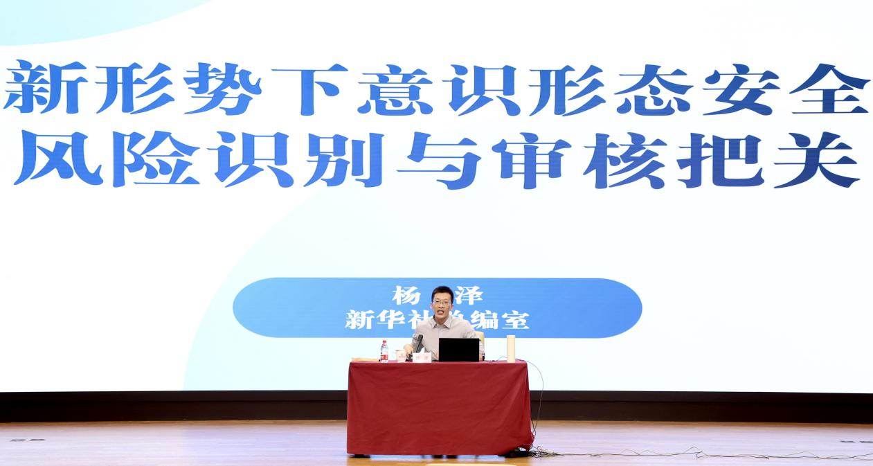 新華社總編室楊澤通過大量實例,從著重于政治效果,增強敏銳性鑒別力洞察力;著重于社會效果,有效識別媒體傳播安全風險;著力于宣傳效果,穩慎把好導向關、內容關、安全關;著力于實際效果,提升意識形態安全把控本領四個方面分享了意識形態安全風險識別與審核的經驗。