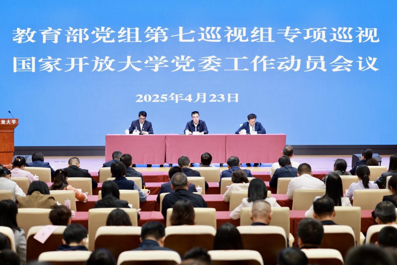 根據教育部黨組巡視工作統一部署,2025年4月23日,教育部黨組第七巡視組專項巡視國家開放大學(以下簡稱開放大學)黨委工作動員會議召開。會前,巡視組組長金能明,副組長呂東偉與開放大學黨委書記、校長王啟明見面溝通,通報了巡視工作有關安排。會上,金能明作了動員講話,對深入學習貫徹習近平總書記關于教育、關于巡視工作的重要論述,貫徹落實黨的二十大、二十屆三中全會和全國教育大會精神,貫徹落實二十屆中央紀委四次全會和全國巡視工作會議要求,貫徹落實黨中央重大決策部署和部黨組工作要求,扎實開展巡視工作提出要求。王啟明主持會議并作表態發言。