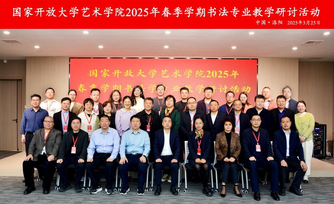 為深入貫徹國家開放大學“創優提質”戰略,全面推進書法學專業高質量發展,助力學校美育與公共藝術課程資源建設,3月24日至26日,國家開放大學藝術學院在河南洛陽舉辦2025年春季學期書法學專業教學工作研討活動。來自國家開放大學總部及河南、四川、江蘇等20余所開放大學的書法教育專家、專業負責人、一線教師代表齊聚一堂,共商書法學科發展大計。河南開放大學副校長吳建偉、洛陽開放大學黨委書記李欣、洛陽市書協主席劉燦輝參加開幕式并講話。研討會由國家開放大學藝術學院副院長張鳳主持。