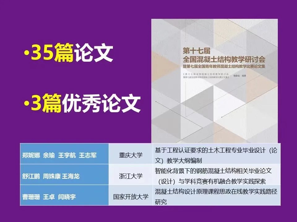 學校混凝土結構課程組的兩名青年教師在教學比賽和優秀論文評選兩個項目上獲佳績。在理工教學部教授、校學術委員王卓的指導下,理工教學部閆曉宇副教授參加了教學比賽,通過實時展示、即興講授、專家點評等環節,最終獲得三等獎;實驗學院曹珊珊博士參加了優秀論文評選,在經過了專家匿名評審和大會學術委員會評議,最終從會議論文集收錄的35篇論文中脫穎而出,入圍3篇優秀論文。