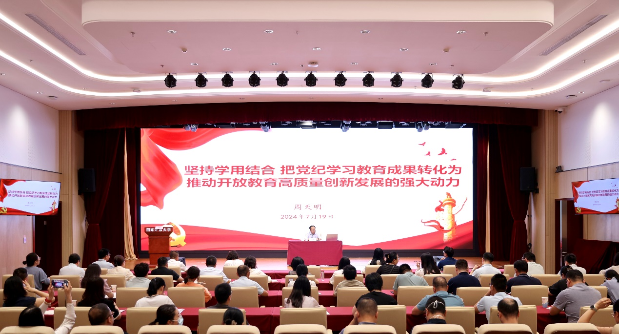 為進一步將黨紀學習教育抓緊抓實、抓出成效,把黨紀學習教育成果轉化為推動開放教育高質量發展的強大動力,7月19日,國家開放大學副校長周天明以“堅持學用結合 把黨紀學習教育成果轉化為推動開放教育高質量創新發展的強大動力”為題,為農林醫藥學院黨支部、社會教育處黨支部、改革發展處黨支部、基金會黨支部、資產管理處黨支部、后勤保衛處黨支部、培訓學院黨支部等七支部講授紀律黨課。