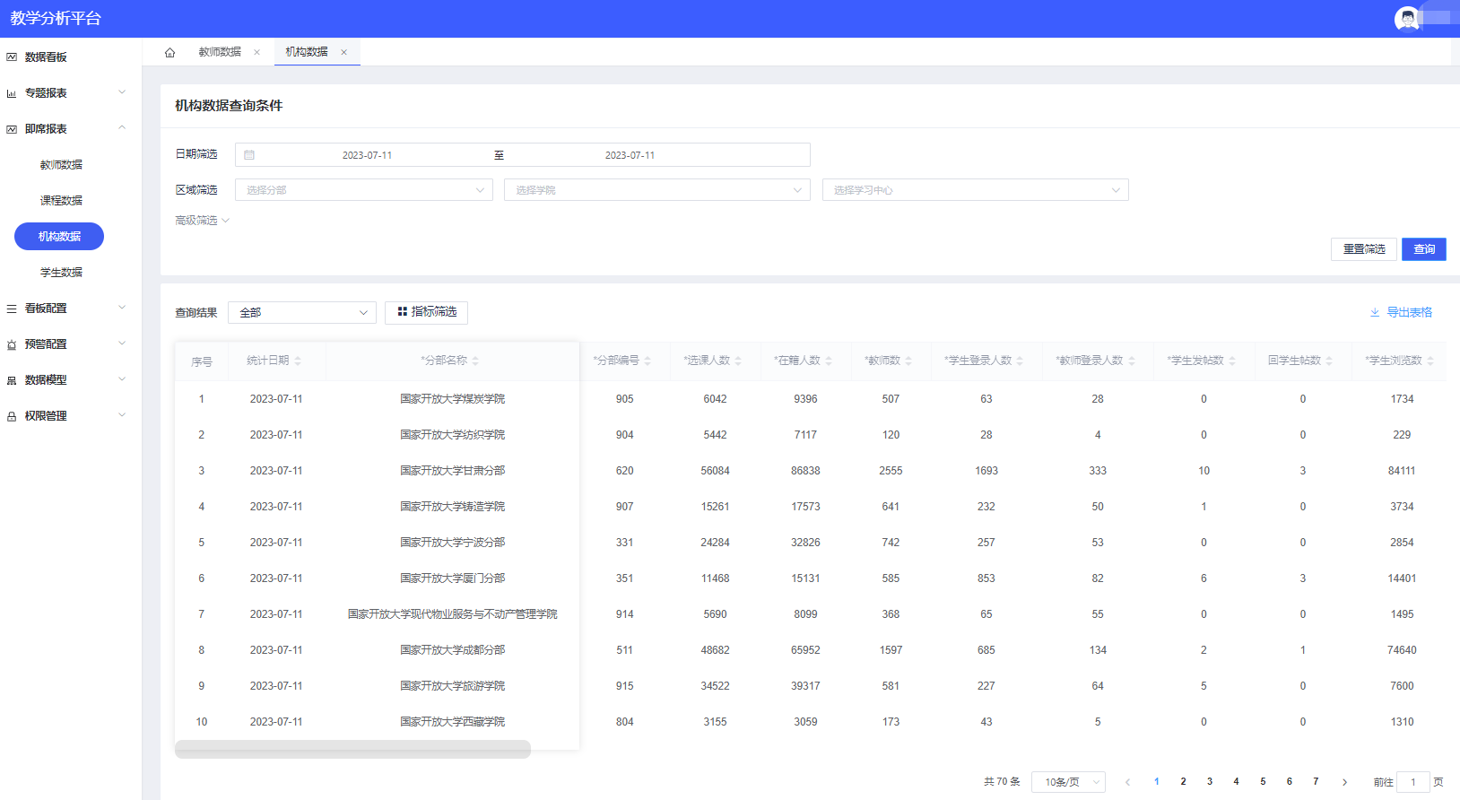 國家開放大學教學分析平臺暑期優化升級 即席報表功能上線
