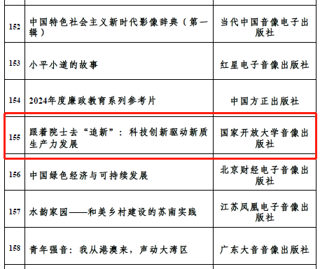 近期,國家開放大學聯合中國科學院學部工作局、中國科學院文獻情報中心策劃的《跟著院士去“追新”:科技創新驅動新質生產力發展》入選中央宣傳部2024年主題出版重點出版物選題。該精品資源由國家開放大學音像出版社制作出版。