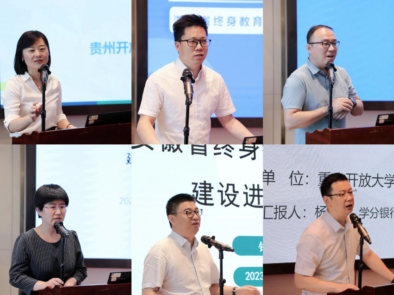 貴州開放大學(xué)教務(wù)處處長(zhǎng)李雪芬、浙江開放大學(xué)學(xué)分銀行管理中心主任呂有偉、湖北開放大學(xué)學(xué)分銀行管理中心副主任溫泉、黑龍江開放大學(xué)學(xué)分銀行副主任梁曉麗、安徽開放大學(xué)學(xué)分銀行管理中心主任錢豐收、重慶開放大學(xué)學(xué)分銀行管理中心副主任楊詩(shī)分別對(duì)各地學(xué)分銀行建設(shè)的理論探索與應(yīng)用實(shí)踐進(jìn)行了專題分享。