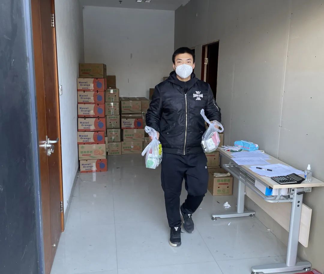 19日上午,他一邊發放橙子,一邊為30名教職工閃送藥品。一個上午,不停地往返于一層庫房、校南門、校東門之間,轉眼間就走了9099步,外面寒風凜冽,他卻早已是滿頭的汗水。晚上,又得知有4名教職工急需用藥,梅楠同志親自把藥品送到教職工家中,還給1名退休教職工快遞了口罩和藥品。面對教職工的感謝,他只是笑著說,“沒事,就當排汗解毒了。”